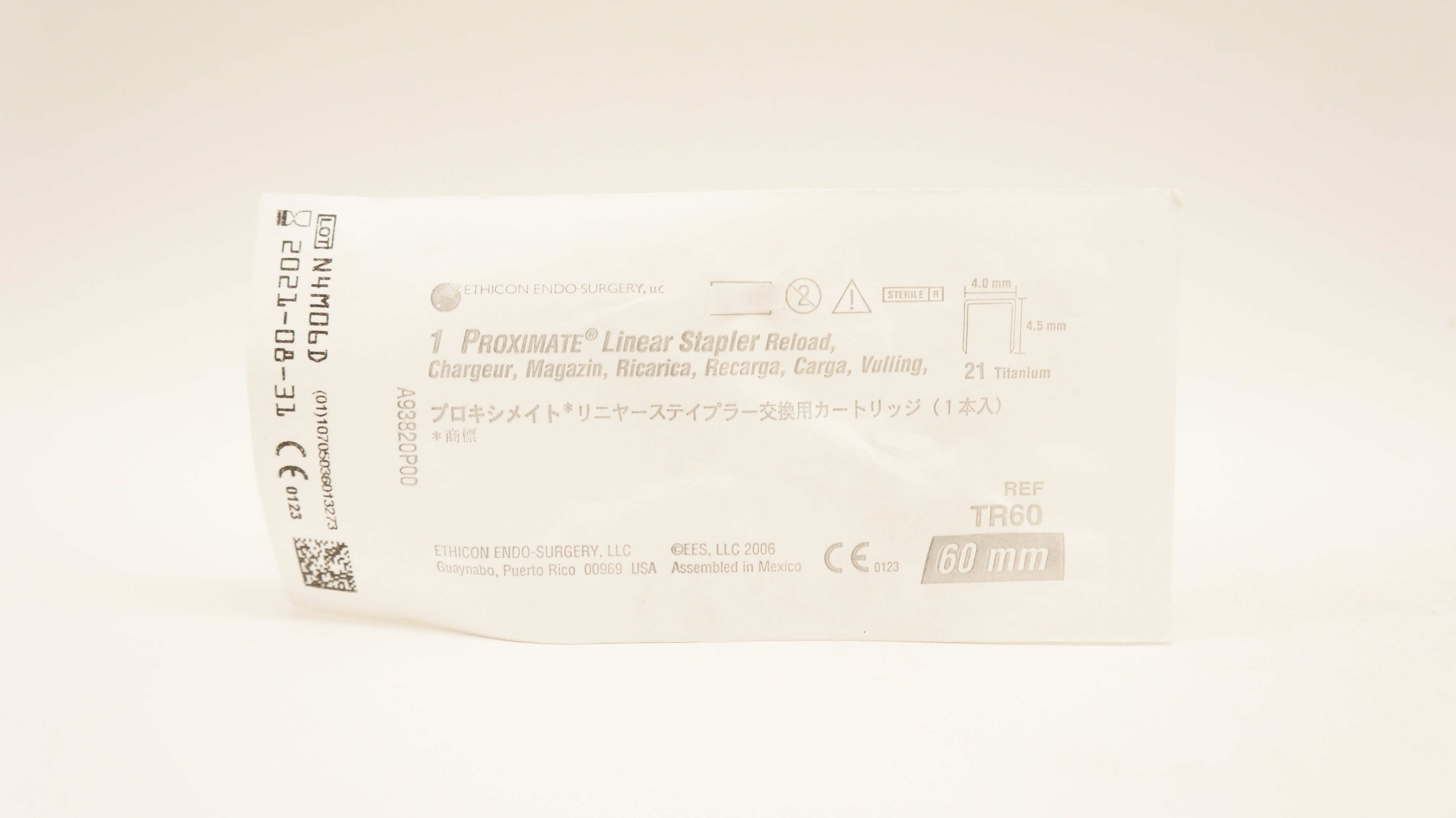 Ethicon TR60 1 Proximate Linear Stapler Reload 21 Titanium 60mm 4.0mm x 4.5mm