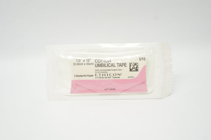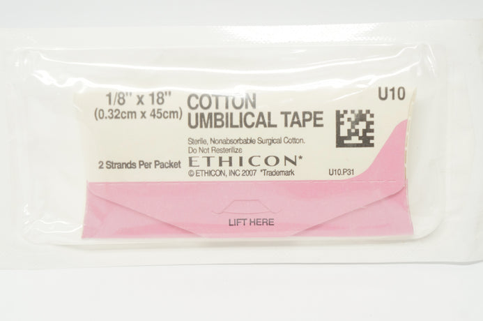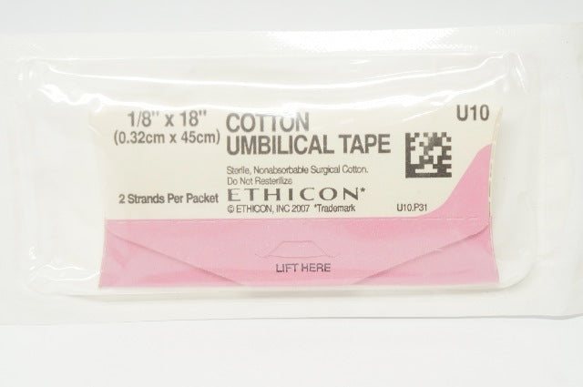 - Ethicon U10 COTTON UMBILICAL TAPE, 1/8inch x 18inch (x)