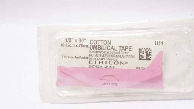Ethicon U11 Cotton Umbilical Tape Nonabsorbable Surgical Cotton 1/8 x 30inch(x)