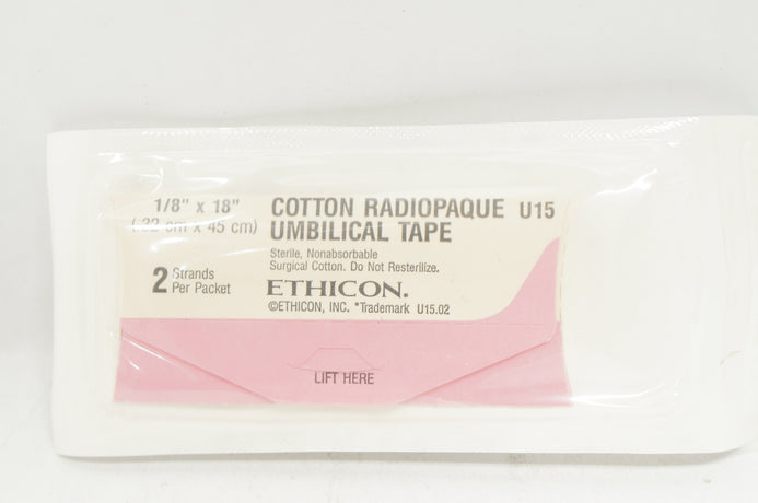 Ethicon U15 Cotton Radiopaque Umbilical Tape 1/8inch x 18inch (x) - Pack of 2