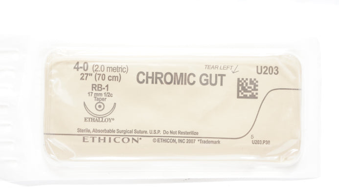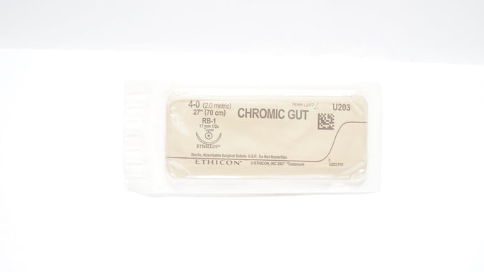 Ethicon U203 4-0 CHROMIC GUT Surgical Stre RB-1 17mm 1/2c Taper, 27inch