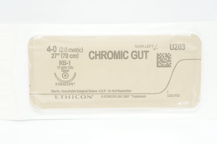 - Ethicon U203 4-0 Chromic Gut Surgical Stre RB-1 17mm 1/2c Taper, 27inch (x)