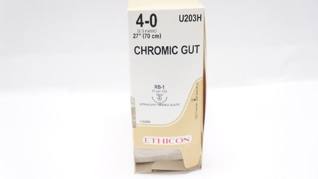 Ethicon U203H 4-0 Chromic Gut Stre RB-1 17mm 1/2c Taper 27inch - Box of 24
