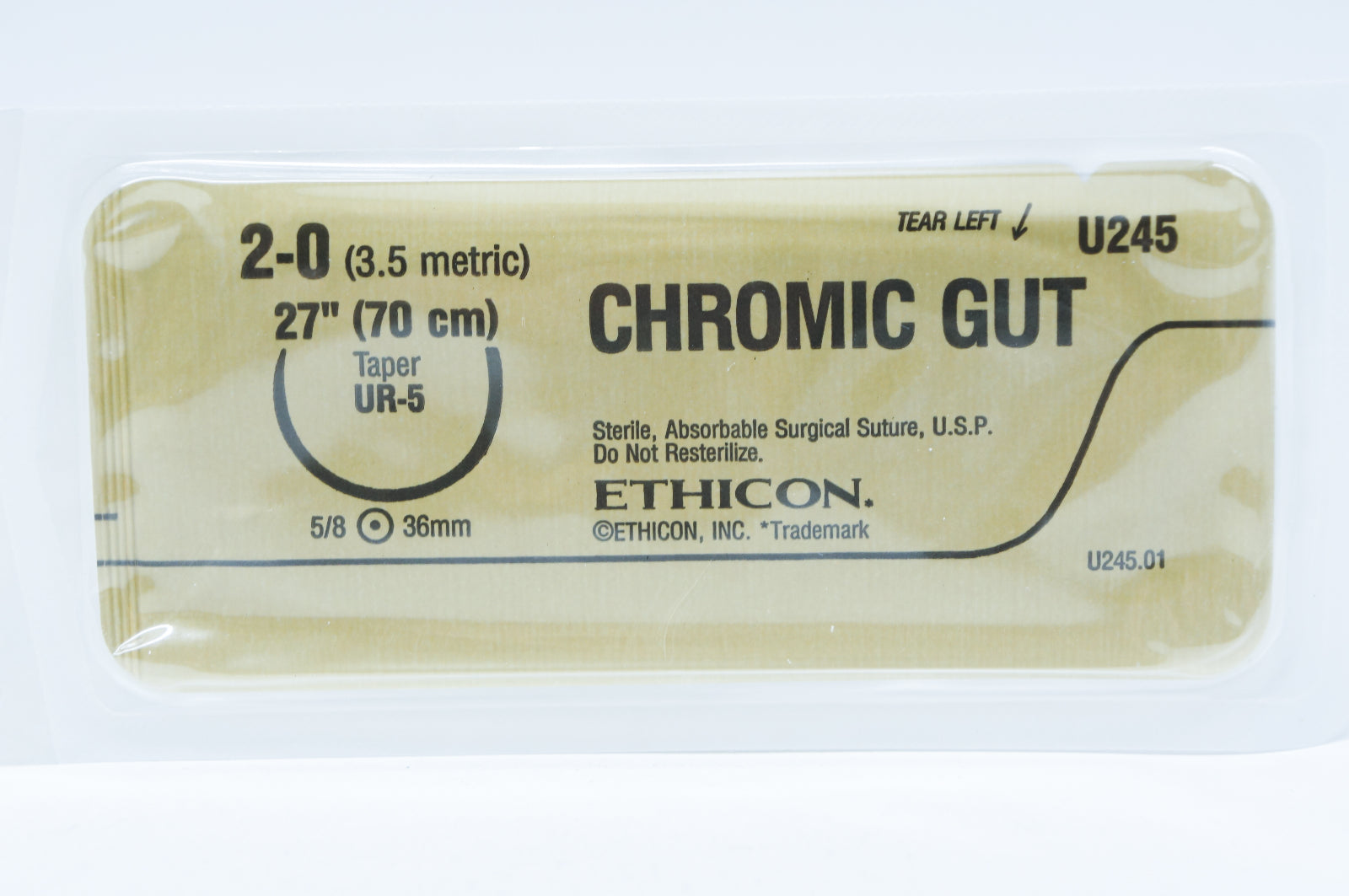 Ethicon U245 2-0 CHROMIC GUT, UR-5, 5/8 36mm Taper, 27inch (x) - Lot of 108