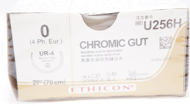 - Ethicon U256H 0 Chromic Gut Stre UR-4 40mm 5/8c Taperpoint 27inch(x) - Box of 36