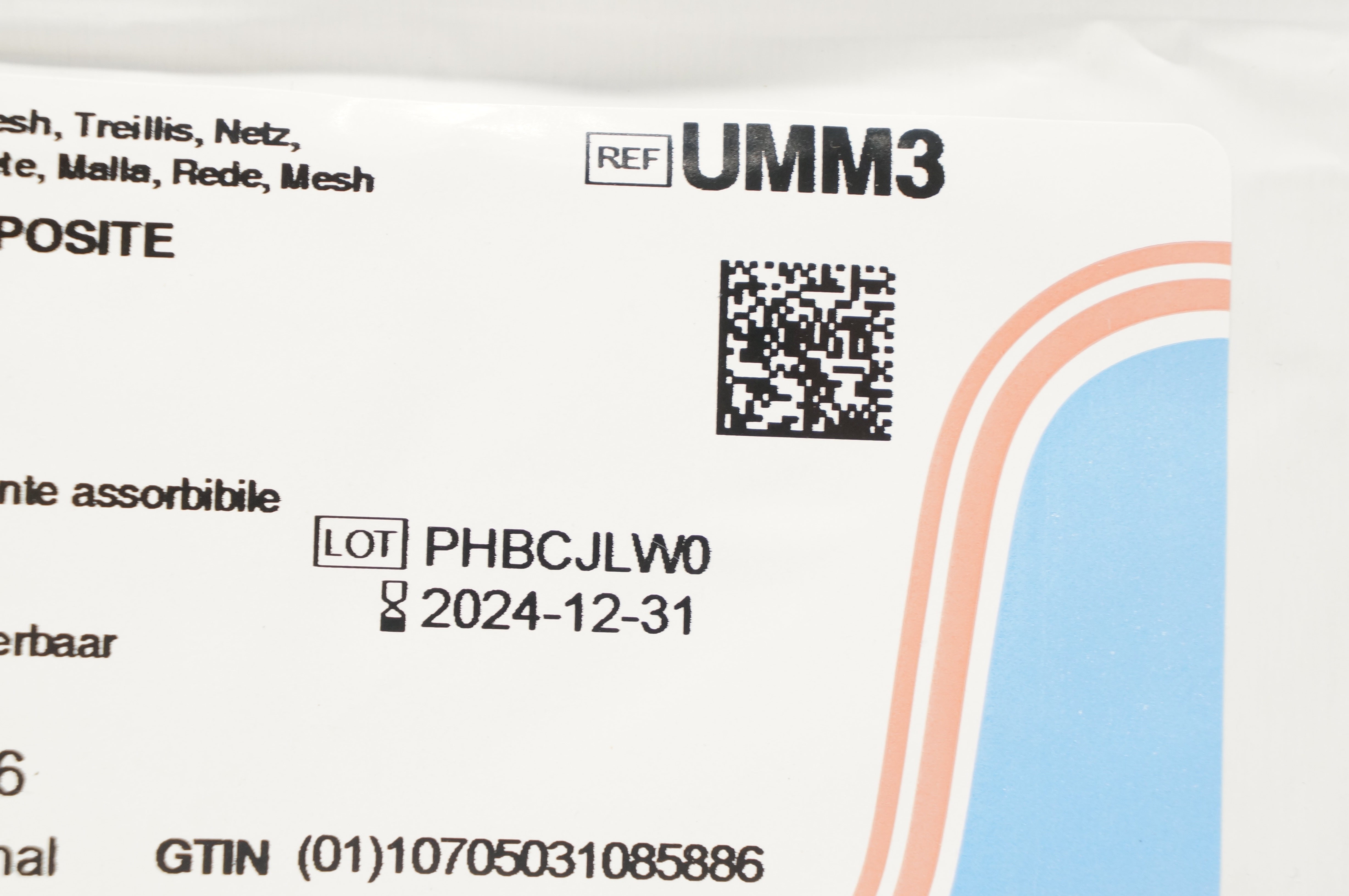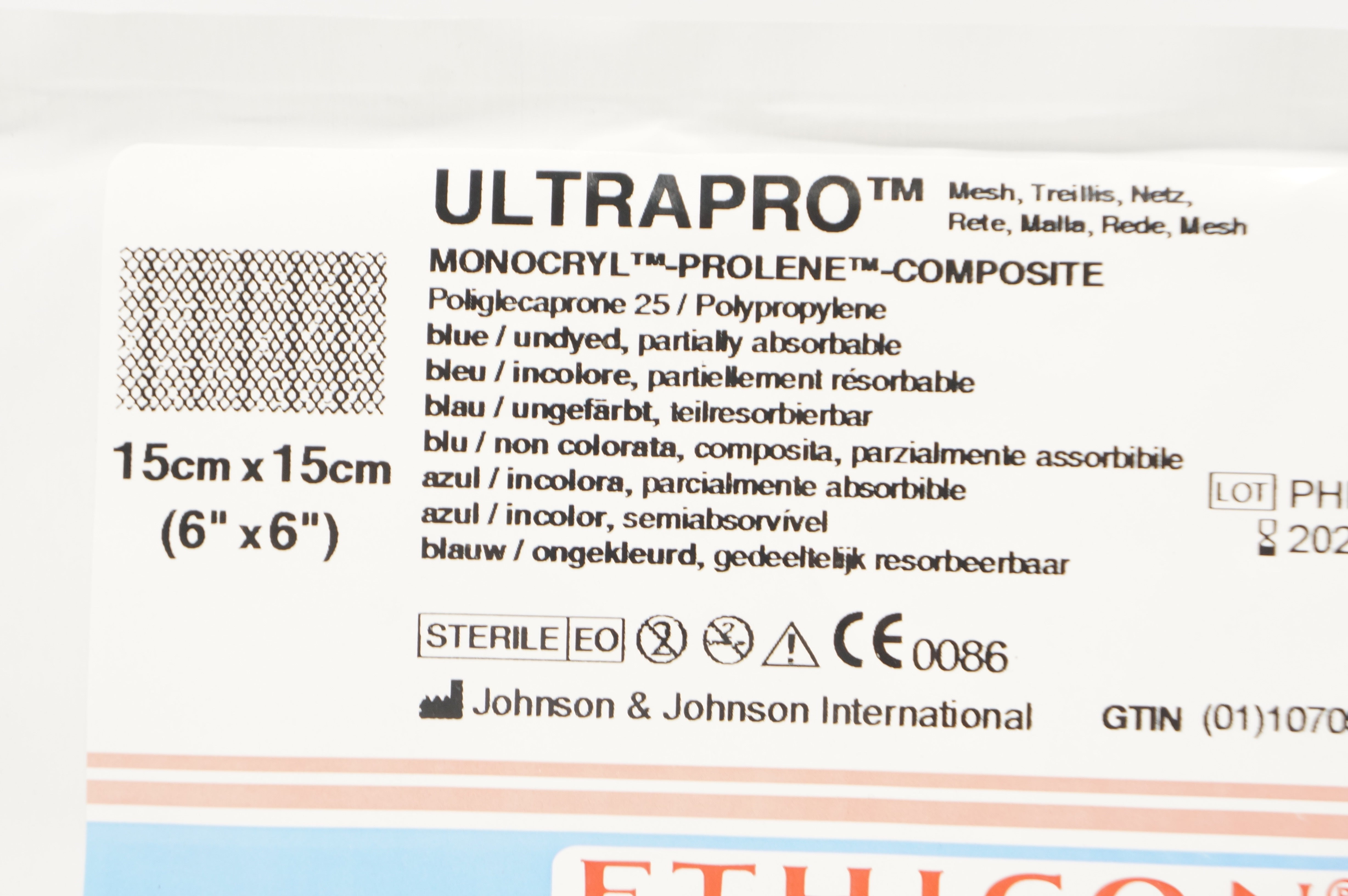 Ethicon UMM3 ULTRAPRO Monocryl-Prolene-Composite Poliglecaprone 25/Polypropylene, blue/undyed, partially absorbable 6 x 6in