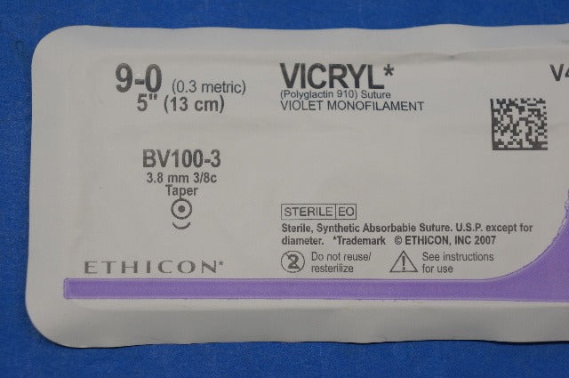 Ethicon V402 VICRYL, BV100-3 3.8mm 3/8c Taper, Violet Monofilament, 5", Size 9-0