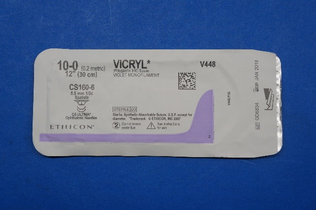 Ethicon V448 VICRYL, CS160-6 5.5mm 1/2c Spatula, Violet Monofilament, 12inch, Size 10-0