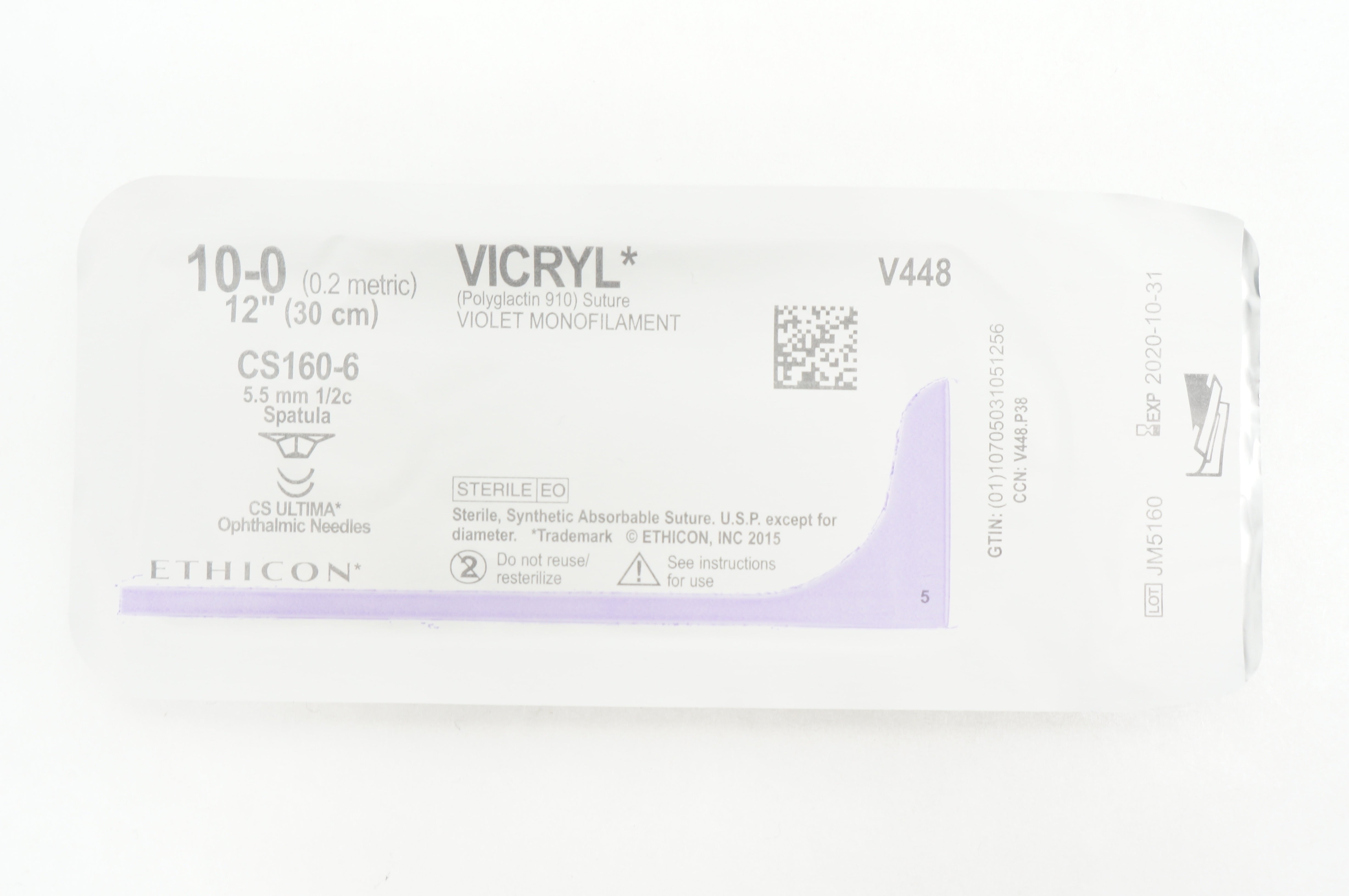 Ethicon V448 6-0 VICRYL 10-0 CS160-6 5.5mm 1/2c Spatula, 12inch (x)