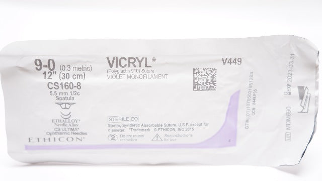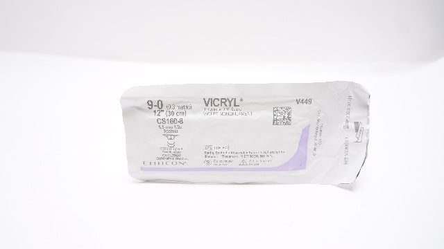 - Ethicon V449 9-0 Vicryl Polyglactin Stre CS160-8 5.5mm 1/2c Spatula 12inch (x)