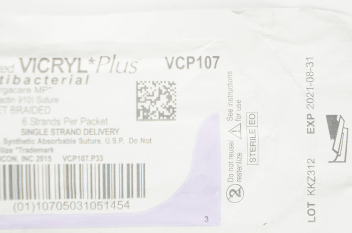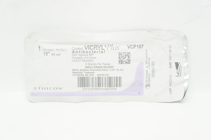 Ethicon VCP107 1 Coated VICRYL Plus Antibacterial With Irgacare Polyglactin 910 Suture Violet Braided 18inch