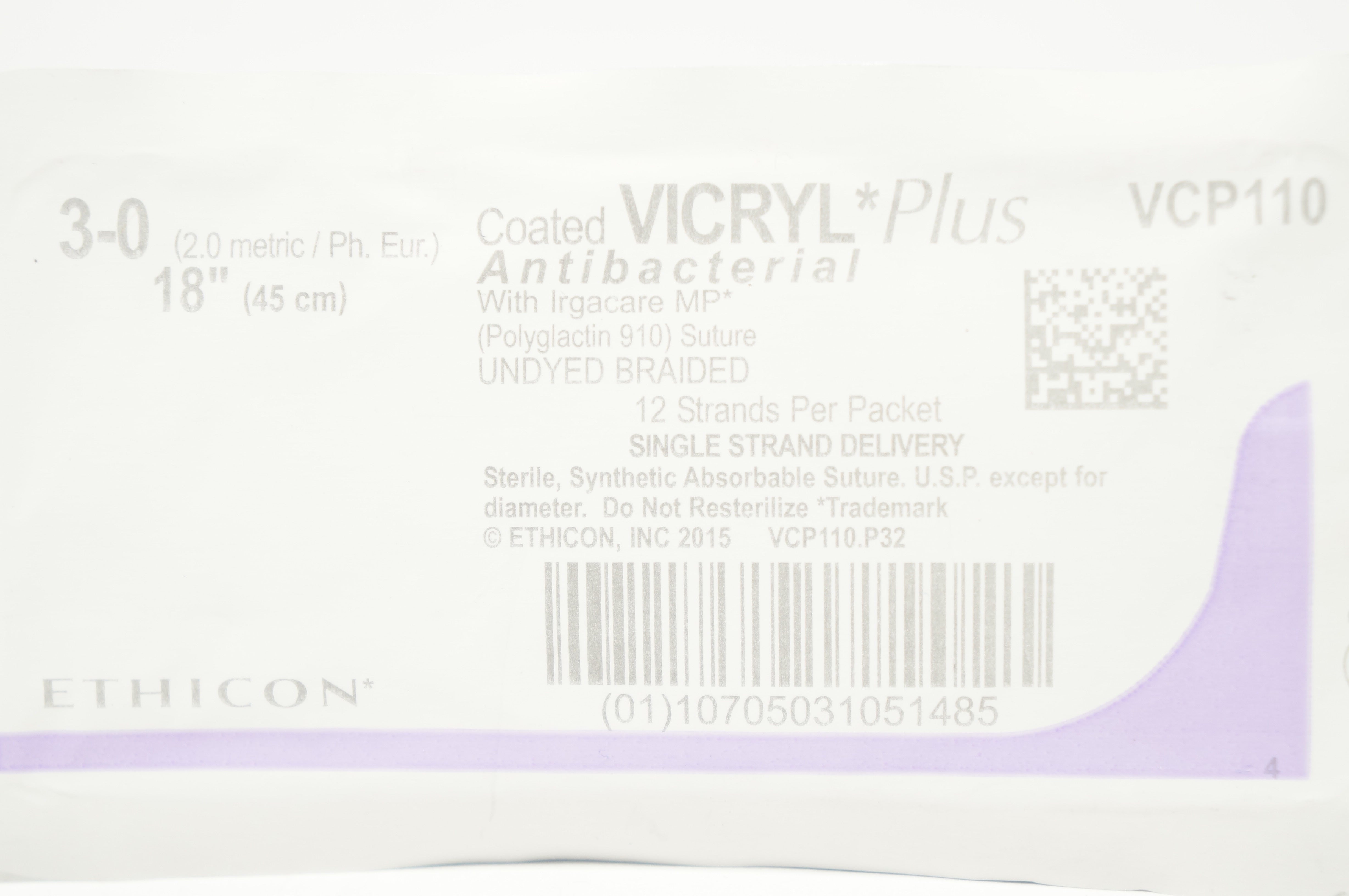 Ethicon VCP110 3-0 Coated VICRYL Plus Antibacterial Polyglactin 910 Stre, 18inch