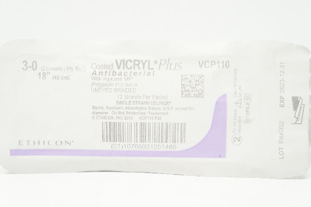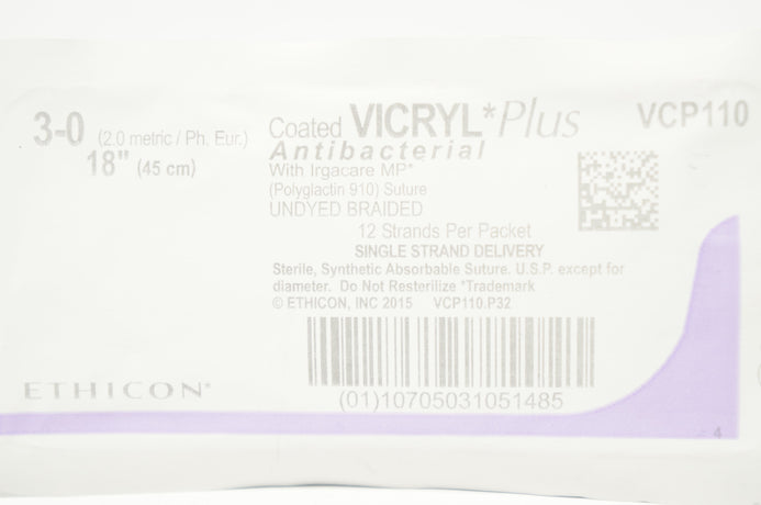 Ethicon VCP110 3-0 Coated VICRYL  Plus Antibacterial Polyglactin 910 Stre, 18inch