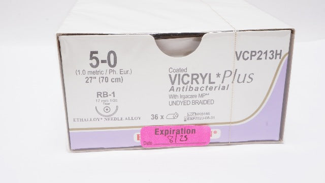 - Ethicon VCP213H 5-0 VICRYL Plus Stre RB-1 17mm 1/2c Taper 27inch (x) - Box of 36
