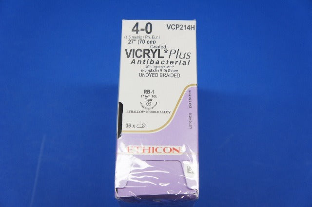- Ethicon VCP214H VICRYL Plus, RB-1, Undyed Braided 27 -Box of 36