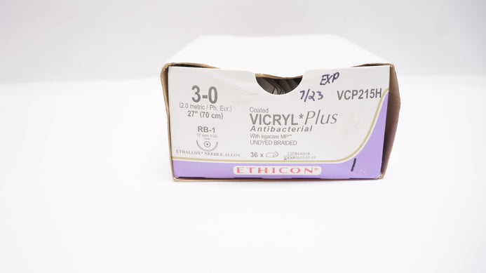 - Ethicon VCP215H 3-0 VICRYL, RB-1, 17mm 1/2c Taper, 27inch (x) - Box of 22
