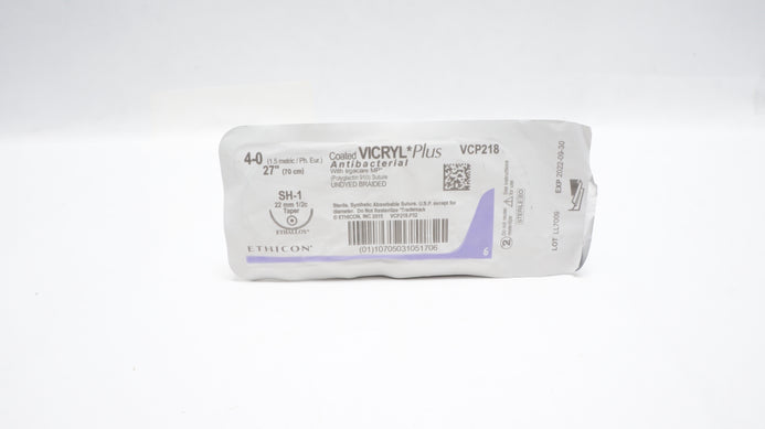 Ethicon VCP218 4-0 VICRYL Plus, SH-1 22m 1/2c Taper, Undyed Braided, 27in. (x)