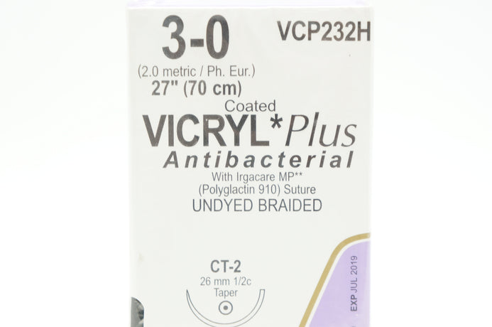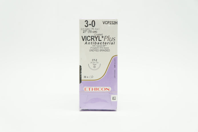 Ethicon VCP232H 3-0 VICRYL Plus Stre CT-2 26mm 1/2c Taper 27inch (x) - Box of 36