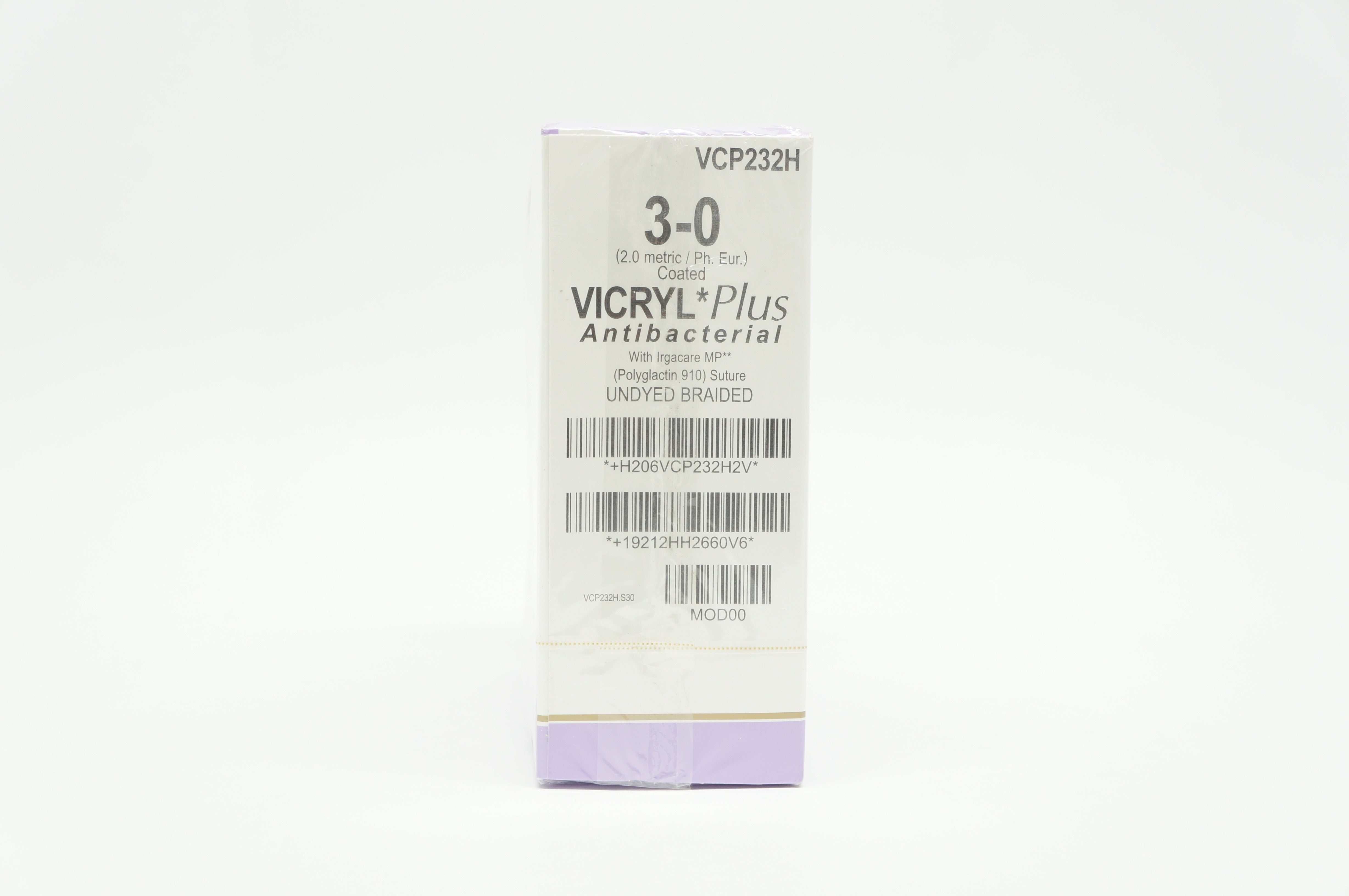 Ethicon VCP232H 3-0 VICRYL Plus Antibacterial With Irgacare MP** (Polyglactin 910) Suture Undyed Braided CT-2 26mm1/2c Taper 27inch