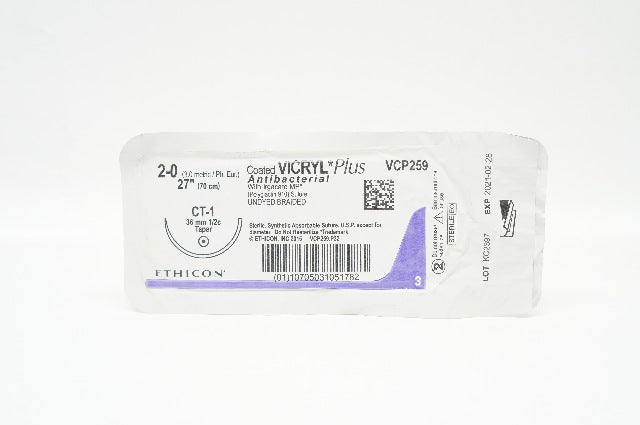 - Ethicon VCP259 2-0 VICRYL PLus CT-1 36mm 1/2c Taper 27inch (x)