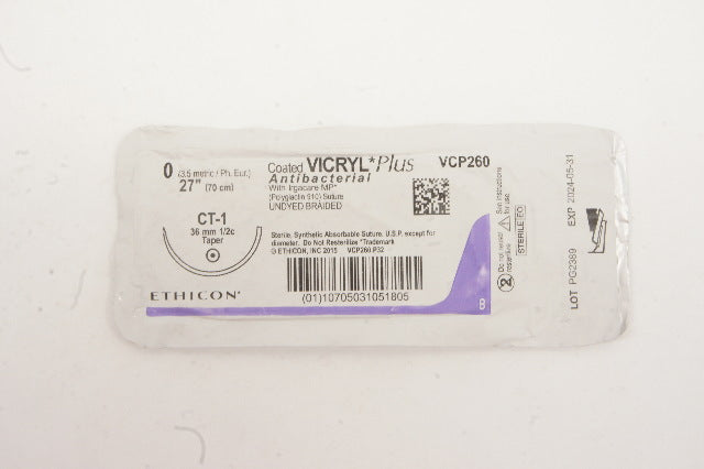 - Ethicon VCP260 0 VICRYL Plus Antibacterial, CT-1, 36mm 1/2c, 27inch