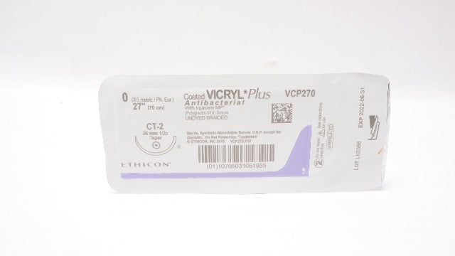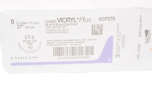 - Ethicon VCP270 0 Coated VICRYL PLus Braided Stre CT-2 26mm 1/2c Taper 27inch (x)