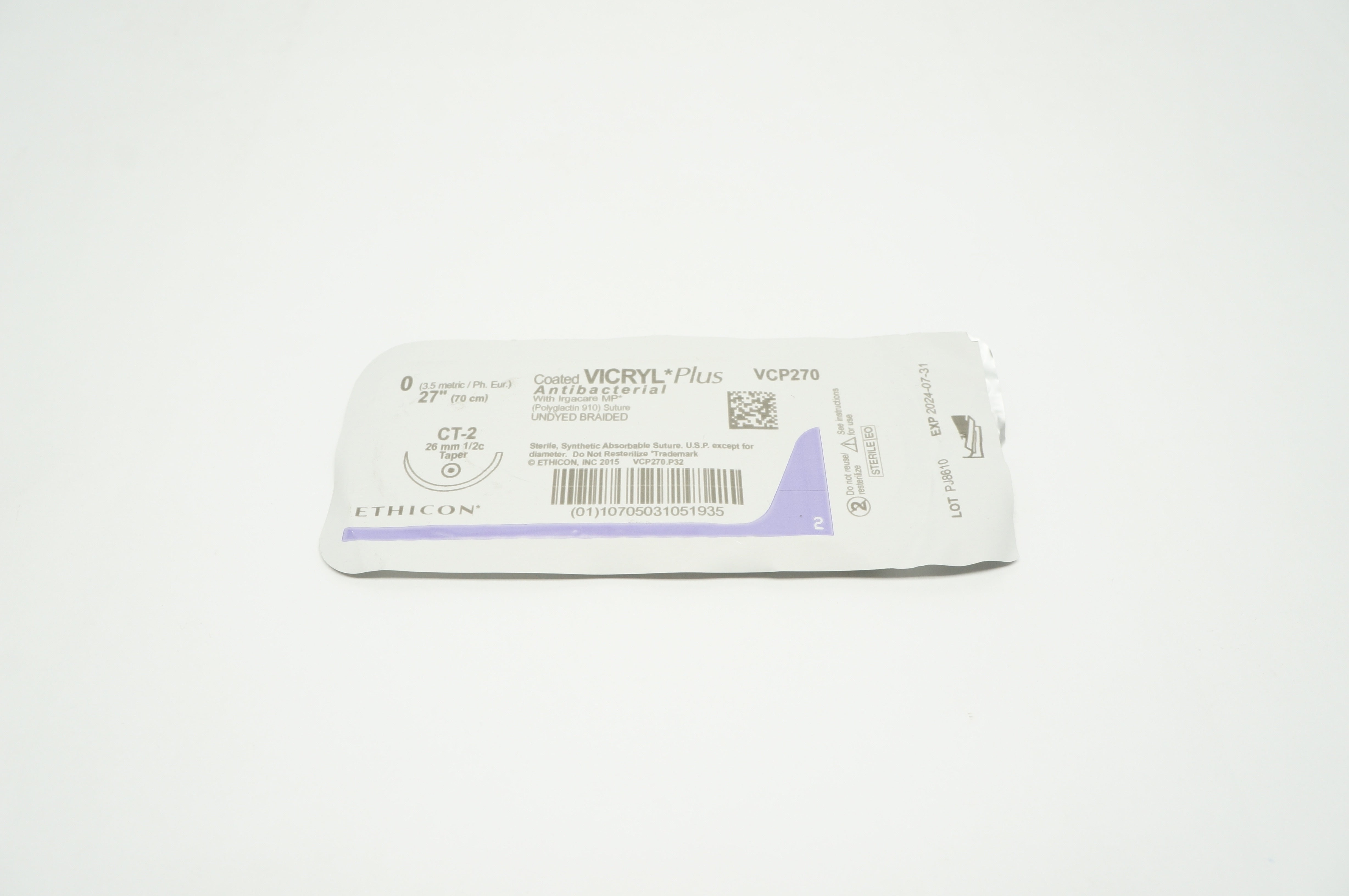 - Ethicon VCP270 0 VICRYL PLus, CT-2, 26mm 1/2c Taper 27 inch