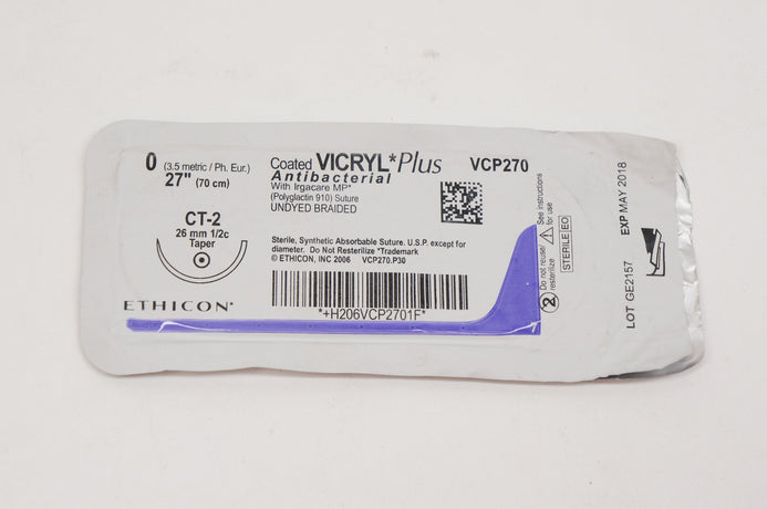 - Ethicon VCP270 0 VICRYL Plus, CT-2, 26mm 1/2c Taper, 27inch (x)