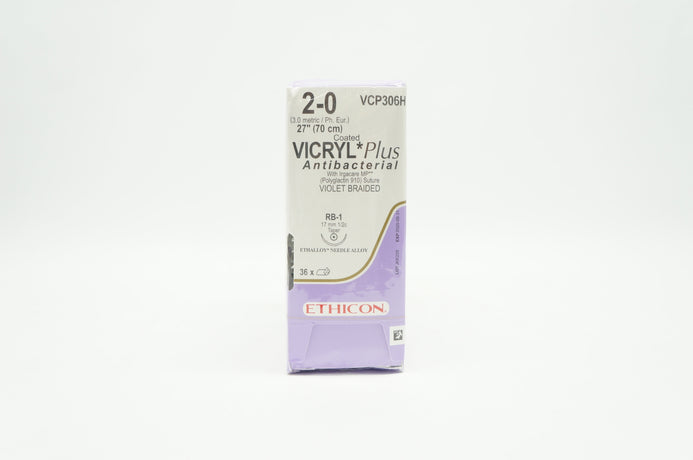 - Ethicon VCP306H 2-0 VICRYL Plus RB-1 17mm 1/2c Taper 27 inch (x) - Box of 36