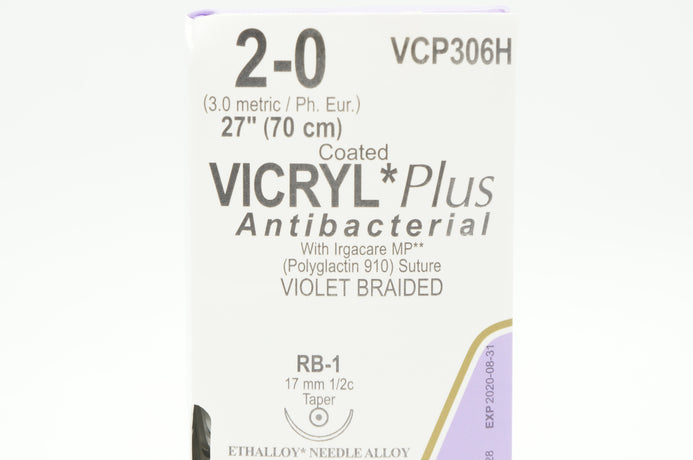 - Ethicon VCP306H 2-0 VICRYL Plus RB-1, 17mm 1/2c Taper, 27inch (x) - Pack of 36