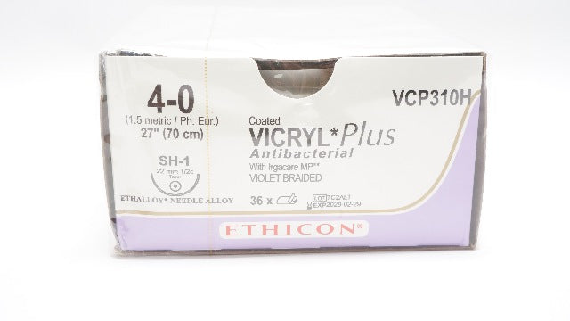 Ethicon VCP310H 4-0 VICRYL, Violet Braided, SH-1, 22mm 1/2c Taper, 27inch