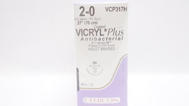 - Ethicon VCP317H 2-0 Coated VICRYL Plus SH 26mm 1/2c Taper 27inch (x) - Box of 36