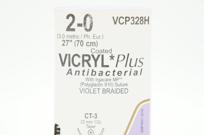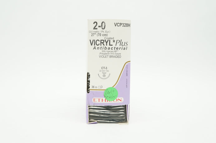 Ethicon VCP328 2-0 VICRYL Plus CT-3 22mm 1/2c Taper 27 inch (x) - Box of 36