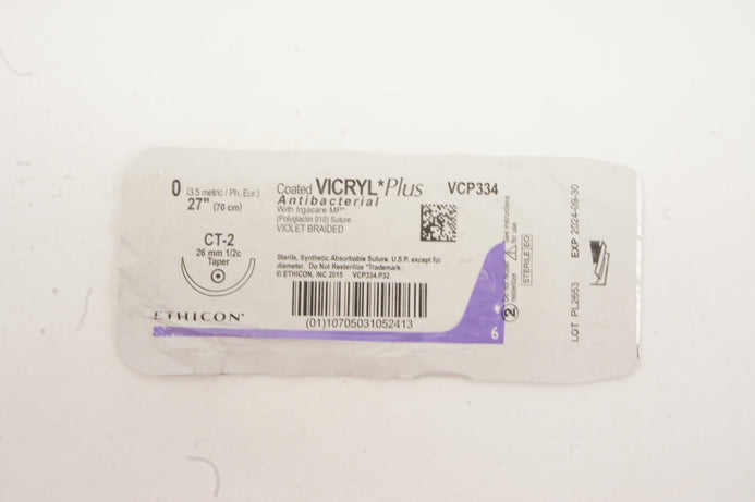 - Ethicon VCP334 0 VICRYL PLUS, CT-2, 26mm 1/2c Taper, 27 inch