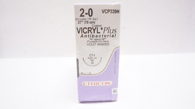 - Ethicon VCP339H 2-0 VICRYL Plus Stre CT-1 36mm 1/2c Taper, 27inch (x)- Box of 36