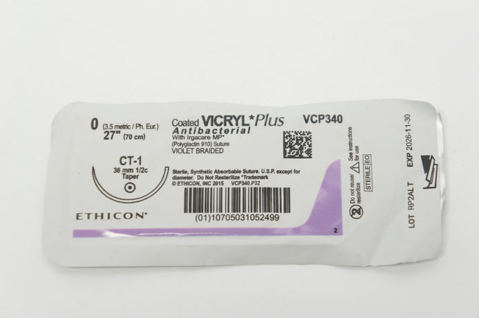 - Ethicon VCP340 0 Coated VICRYL Plus Stre, CT-1 36mm 1/2c Taper, 27inch