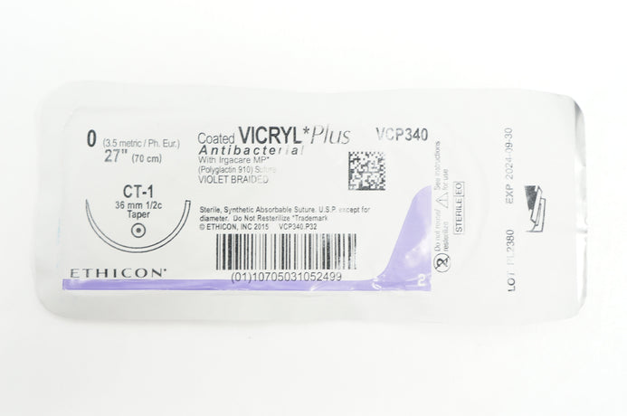 - Ethicon VCP340 0 VICRYL Stre, CT-1, 36mm 1/2c Taper, 27 inch (x)