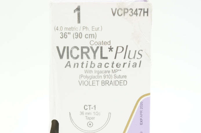 Ethicon VCP347H 1 Coated VICRYL Plus CT-1 36mm 1/2c Taper 36inch (x) - Box of 36