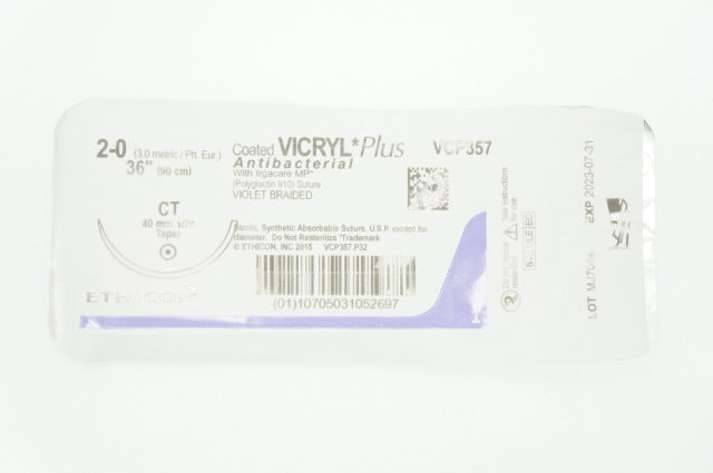 Ethicon VCP357 2-0 VICRYL Plus CT 40mm 1/2c Taper 36inch