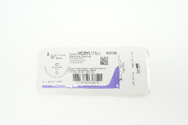 - Ethicon VCP358 0 Coated Vicryl Plus Antibacterial CT 40mm 1/2c Taper 36inch (x)