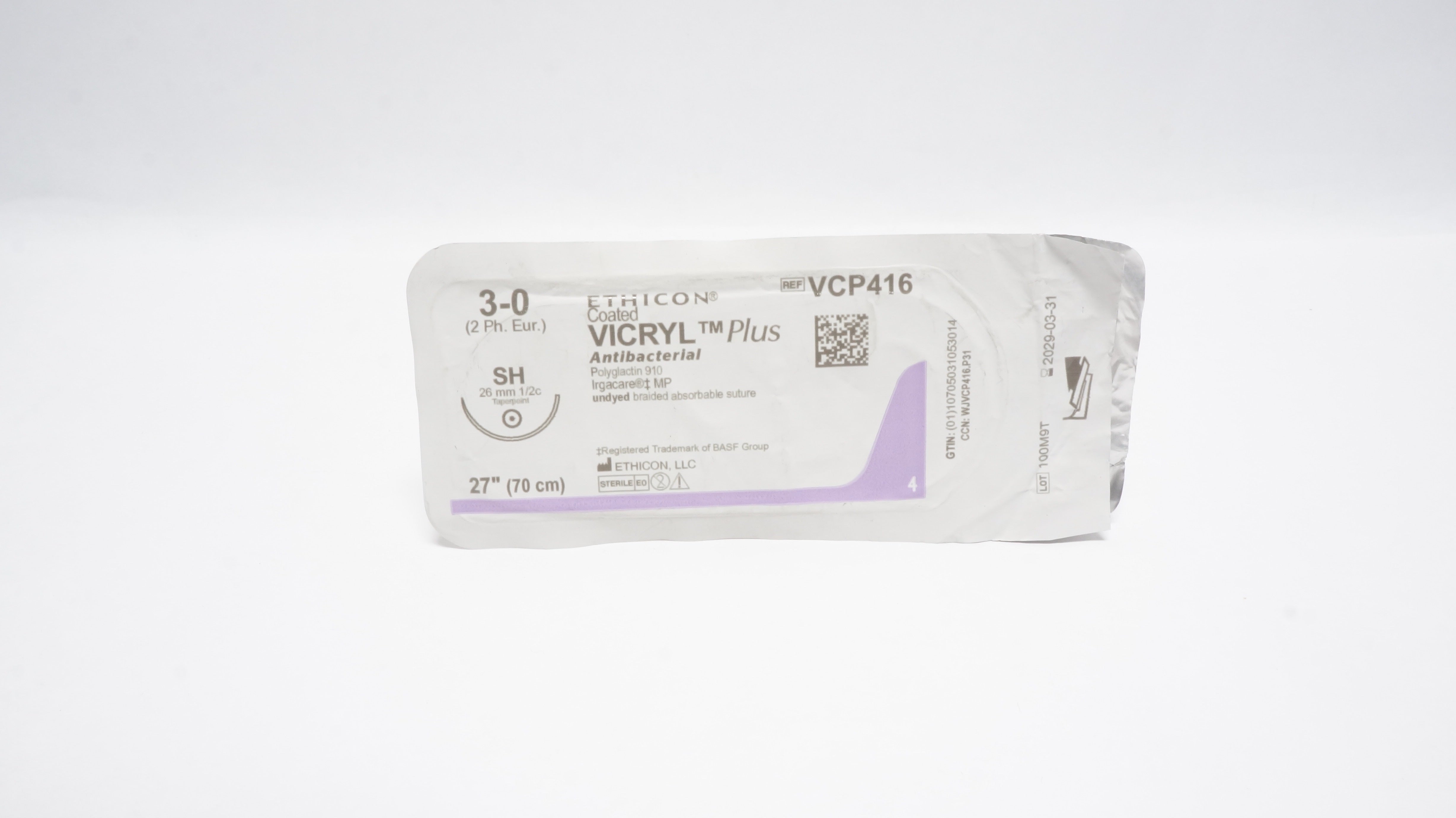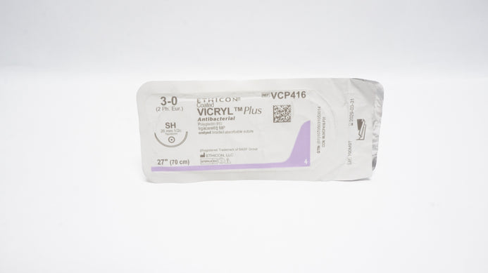 - Ethicon VCP416 3-0 Vicryl Plus Polyglactin Stre SH 26mm 1/2c Taperpoint 27inch