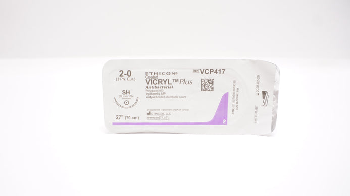 - Ethicon VCP417 2-0 VICRYL Plus, SH, 26mm 1/2c Taper, 27inch