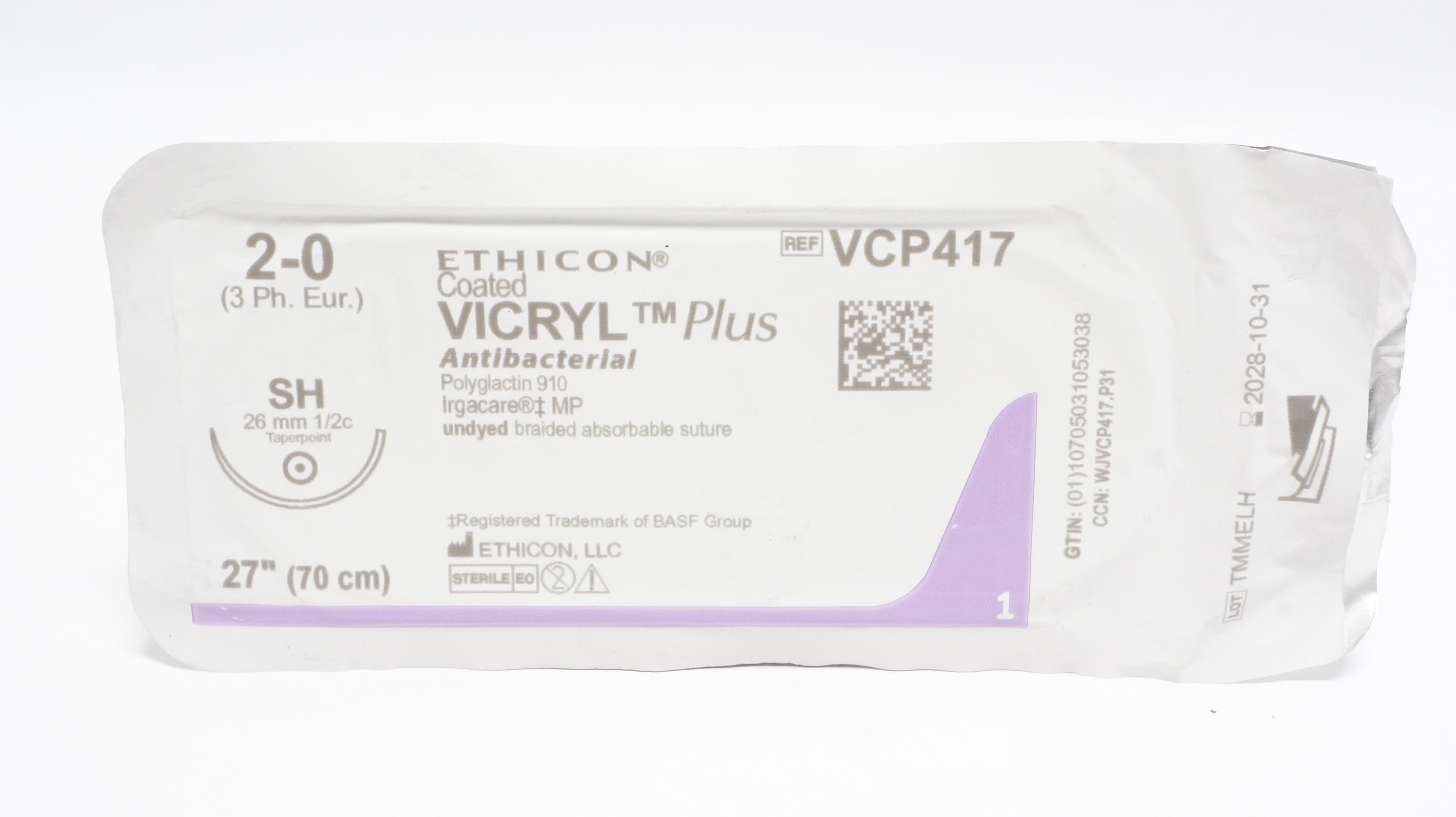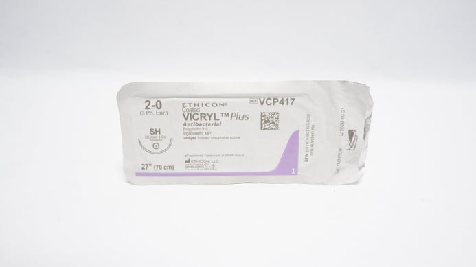 - Ethicon VCP417 2-0 VICRYL Plus, SH, 26mm 1/2c Taper, 27inch