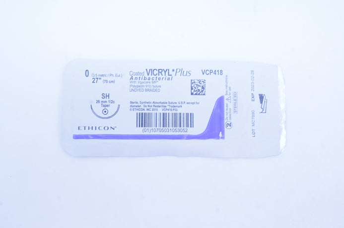 - Ethicon VCP418 0 Coated VICRYL Plus Stre, SH 26mm 1/2c Taper 27inch
