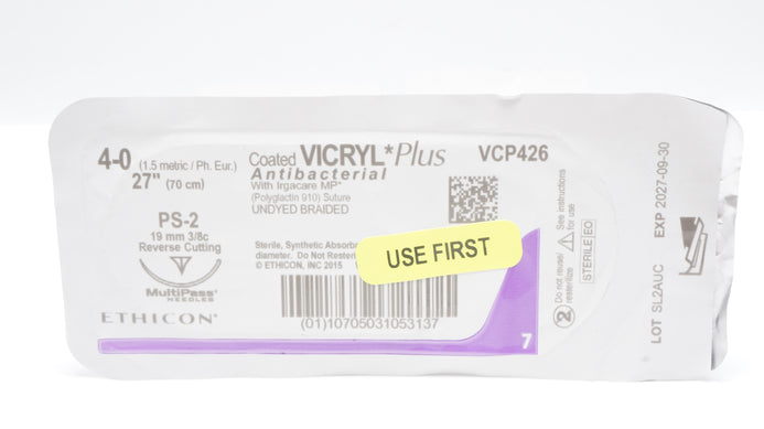 - Ethicon VCP426 4-0 Coated Vicryl Stre PS-2 19mm 3/8c Reverse Cutting 27inch (x)
