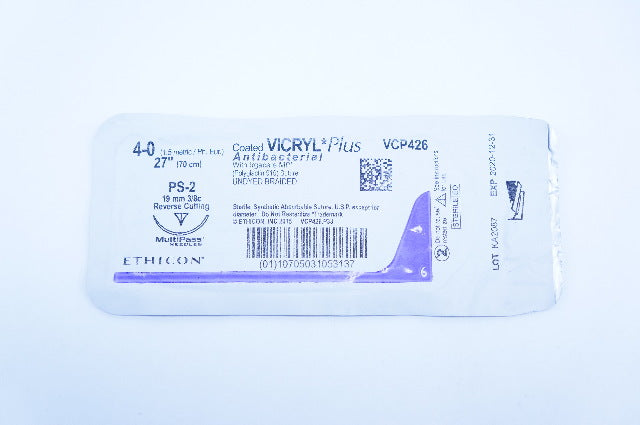 - Ethicon VCP426 4-0 Vicryl Antibacterial Stre. Undyed Braided PS-2, 27inch