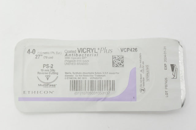 Ethicon VCP426 4-0 Vicryl Plus, PS-2, 19mm 3/8c Reverse Cutting, 27inch