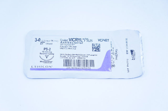 - Ethicon VCP427 3-0 VICRYL Plus, PS-2, 19mm 3/8c, 27inch