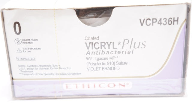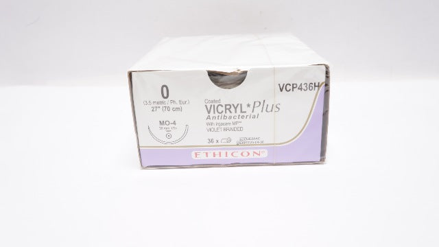 Ethicon VCP436H 0 VICRYL Plus, MO-4, 36mm 1/2c Taper, 27inch - Box of 36