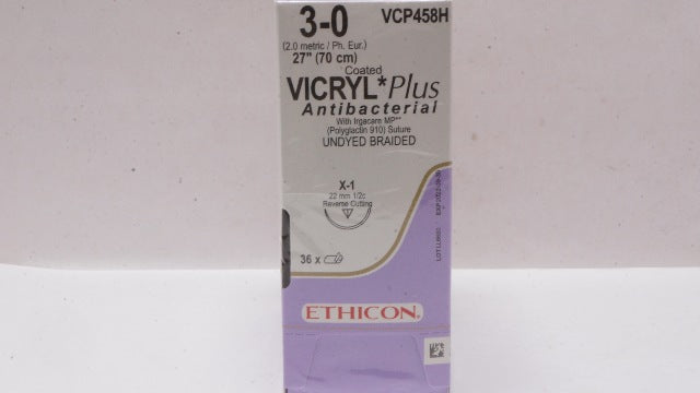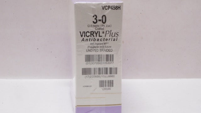 - Ethicon VCP458H 3-0 COATED VICRYL PLUS UNDYED 7inch X-1 22mm Ndle. (x) Box of 36